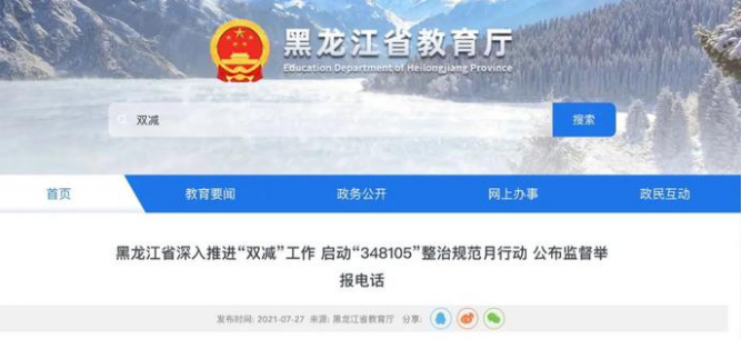 7月27日,黑龙江省教育厅为方便群众及时提供学科类校外培训机构违法违规办学及在职教师违规补课线索、反映问题,公布省教育厅监督举报电话,接受社会各界监督。