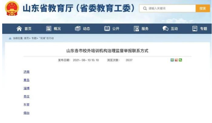 8月13日,山东省教育厅公布了16市校外培训机构举报联系方式。