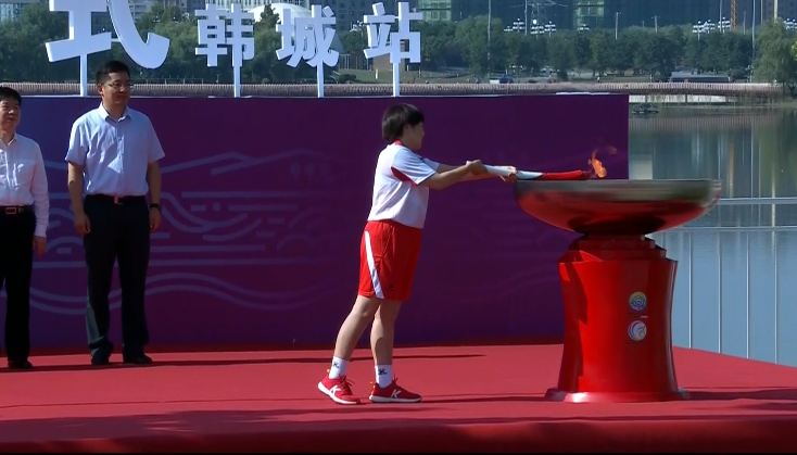 8月20日上午,中华人民共和国第十四届运动会和第十一届残疾人运动会暨第八届特殊奥林匹克运动会火炬传递活动第三站在陕西韩城市举行。