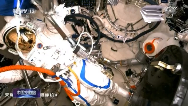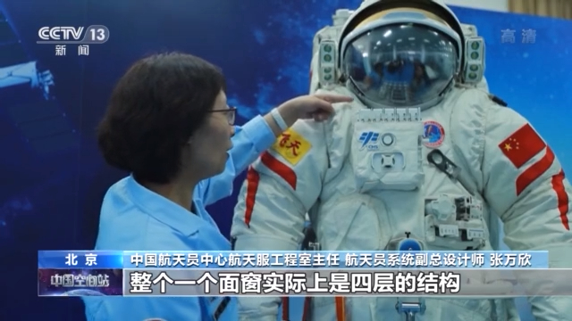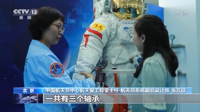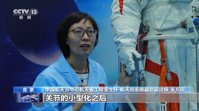 中国航天员科研训练中心航天服工程室主任、航天员系统副总设计师 张万欣:原来的服装就是一米六五到一米八的人来穿着还是比较大。现在我们经过改进提升,就是关节的小型化之后,它可以满足一个一米六到一米八的人穿着使用,适体性越好,它的活动性能才能保障,就是人穿着它就工作起来更轻松。穿五分钟,脱五分钟,这个都是有计时的,一般情况下,受试人员包括航天员都用不了(五分钟),一般也就在三分钟左右。