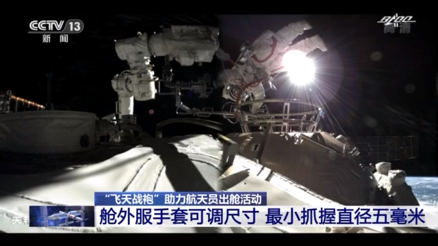 舱外服设计上,上下肢部分,尺寸大小是可调节的,舱外手套也是分型设计,根据不同航天员的人体尺寸,在轨可以动态选择、调节合适的型号和尺寸大小。经过不断优化,二代舱外服目前在轨操作的可达域、精细度、灵活性等方面都有所提高,比如说手套的灵活度,可以达到戴着手套,最小抓握直径五毫米。