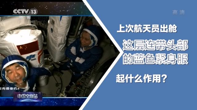 问:上次航天员出舱,这层连带头部的蓝色紧身服,起什么作用?