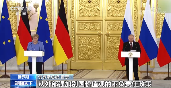 当地时间20日,俄罗斯总统普京在莫斯科与到访的德国总理默克尔举行会谈。