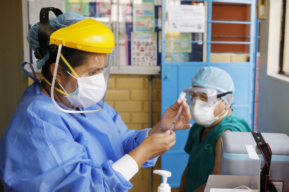 2月9日,在秘鲁首都利马圣巴托洛梅国立医院,一线医护人员接种新冠疫苗。新华社发(玛利亚娜·巴索摄)
