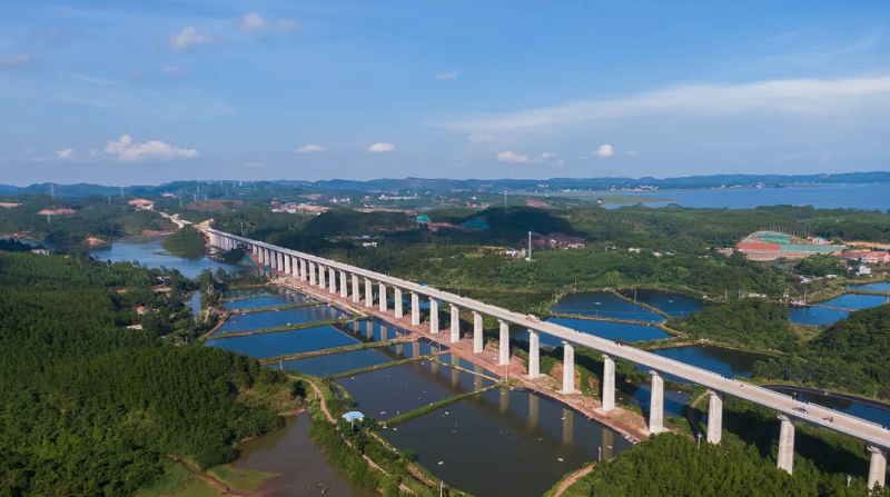防东铁路从北部湾滨海城市防城港市向中越边境东兴市延伸,线路全长46.9公里,设计速度200公里/小时,基础设施预留250公里/小时条件。目前,该铁路全线8座隧道已顺利贯通7座,最后一座铜鼓岭隧道预计今年10月贯通。隧道工程开挖进度达8590米,完成设计总量的95.1%,区间路基土石方工程基本完成,桥梁下部工程完成97.7%。