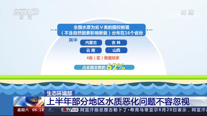 生态环境部昨天(8月20日)研判水环境形势,今年上半年,优良水体断面比例同比增加1.1个百分点,劣Ⅴ类断面比例同比减少0.7个百分点,全国水环境质量总体持续改善。但同时,水生态环境保护不平衡不协调的问题依然突出,部分地区水质恶化等问题不容忽视。