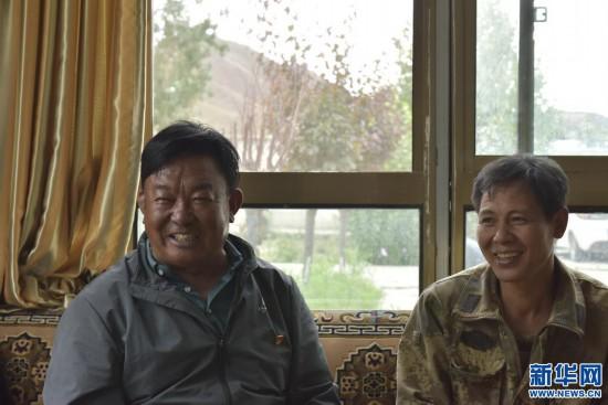 普琼(左)和童纯良笑着回忆以往的故事(7月13日摄)。新华社记者 格桑朗杰 摄