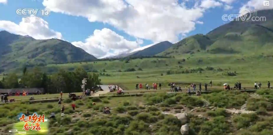 一栋栋小木屋、成群结队的牧群,与雪峰还有森林、草地、蓝天、白云构成了绝美的画卷。