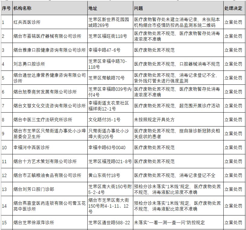 山东烟台33家医疗机构因疫情防控不到位被处罚