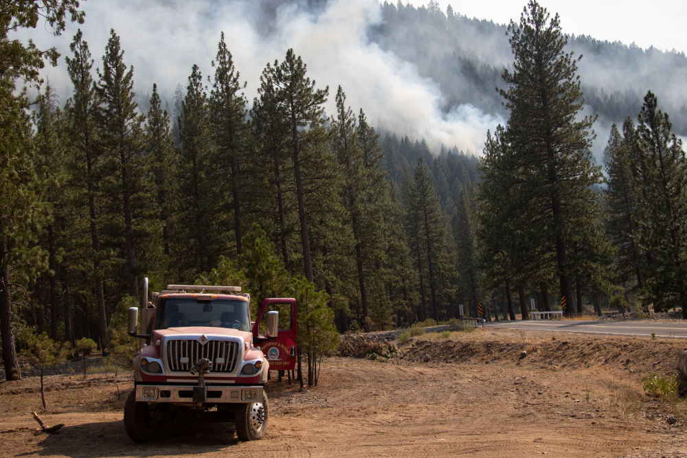 这是8月19日在美国加利福尼亚州北部格林维尔附近拍摄的“迪克西”山火火场。(新华社发,董旭东摄)