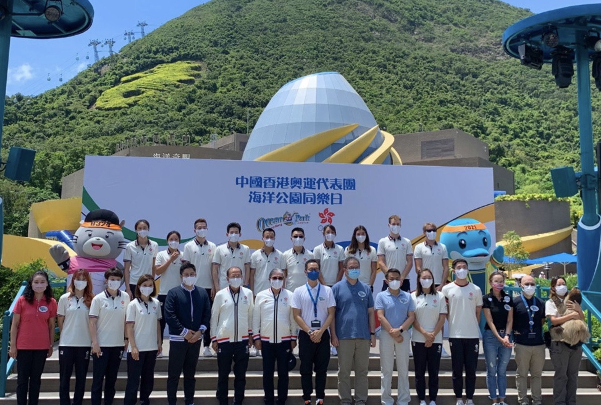 香港海洋公园21日举办奥运代表团同乐日活动,多名参加东京奥运会的中国香港奥运代表团成员代表出席,包括乒乓球代表队成员李皓晴、杜凯琹和黄镇廷,以及羽毛球混双运动员邓俊文和谢影雪。不少市民当日特意入园,希望一睹运动员风采。