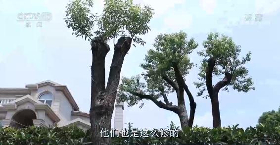 李先生:当时修的时候,我还真打电话问过区绿化部门,电话打进去我问我们自己要修树,有什么审批什么程序吗?电话里面就很干脆把我回掉了,我们这里不受理的,你们家谁种一棵两棵树,修剪让我们绿化部门来,我们哪有这么多的人力,我们不管这些。不管那我参照谁呢,参照周围物业他们也是这么修的,这样参照下来,我也这么修。