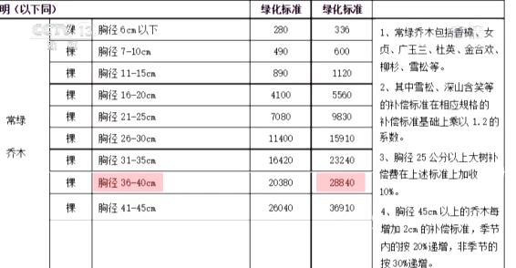 但参考并没有帮助李先生免于处罚。今年3月召开的听证会上,最终仍是按“砍伐树木”处理。按照《上海市绿化管理条例》的有关规定,“砍伐树木”要按照绿化补偿标准的五倍到十倍进行赔偿。城管部门引用了2006年公布的绿化补偿标准,李先生的香樟树胸径为38.8厘米,认定价值为28840元,按照最低标准5倍赔偿,即14.42万元。但问题是,现在香樟的价格对比十多年前,已经出现了较大幅度的降价。