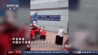 中国女子举重运动员 李雯雯:已经落地了,已经都出关了,核酸也都做完了,现在在等行李,都放心吧。