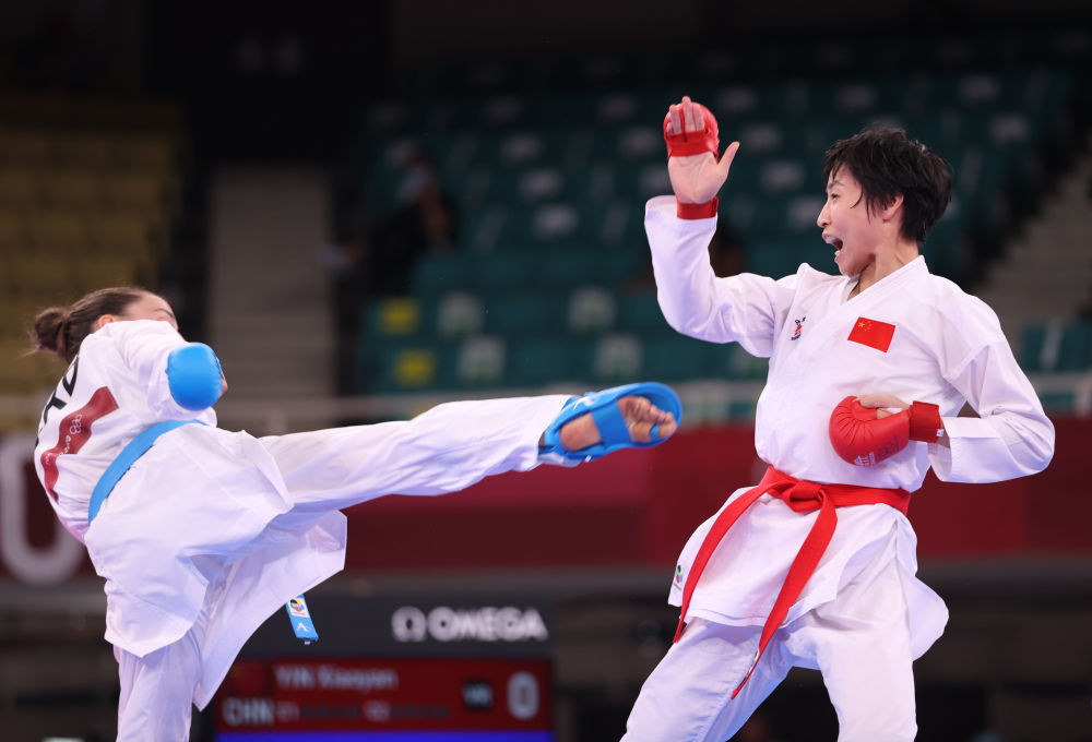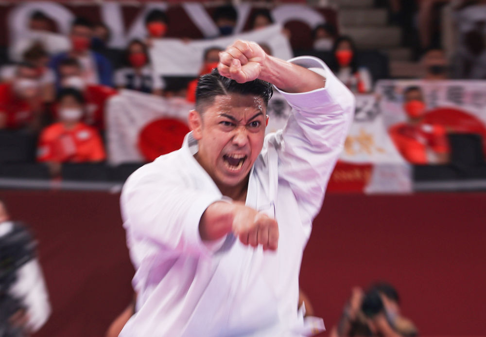 2021年8月6日,日本选手喜友名谅在比赛中。当日,在东京奥运会空手道男子个人型项目决赛中,日本选手喜友名谅战胜西班牙选手选手达米安·金特罗,获得金牌。