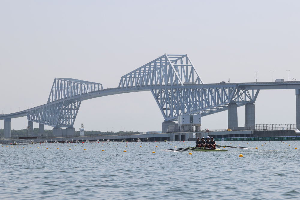 2021年7月20日,中国赛艇队女子四人双桨队员在日本东京海之森水上竞技场进行训练,备战即将开幕的东京奥运会。