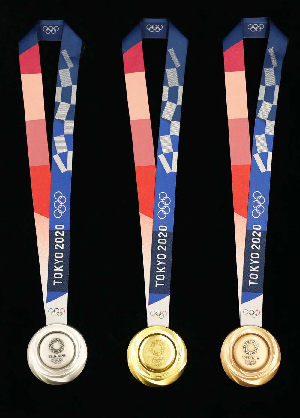 2019年7月24日在日本东京拍摄的2020年东京奥运会奖牌。