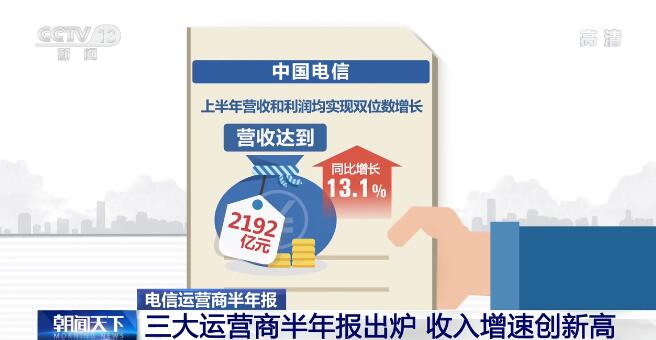 央视网消息:截至目前,我国三大电信运营商今年上半年业绩已全部出炉。三大电信运营商上半年的成绩如何?一起来看记者观察。