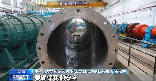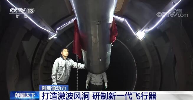 中科院力学所副研究员 怀柔激波风洞现场负责人 韩桂来:风洞是这样,飞行器在天上飞,空气不动,但是我在地面上的时候,我没有办法让飞行器去飞或者这个飞行器还没有研究出来,然后我就做一个飞行器的模型固定在这,然后在风洞里头产生高速的气流来吹这样一个模型,模拟它在天上飞的过程,这个就是风洞。