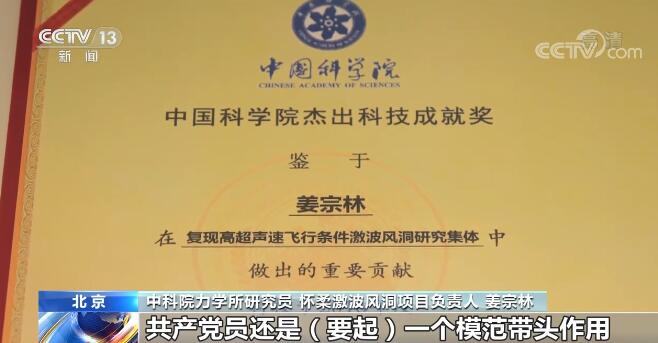 中科院力学所研究员 怀柔激波风洞项目负责人 姜宗林:共产党员还是(要起)一个模范带头作用,因为你毕竟做着前所未有的工作,研究着前所未有的问题。我们做JF-22风洞的一个最基本的思想,奔着国家这样一个天地往返系统,如果做成之后可以把我们现在卫星发射、航天器发射的费用减掉90%。