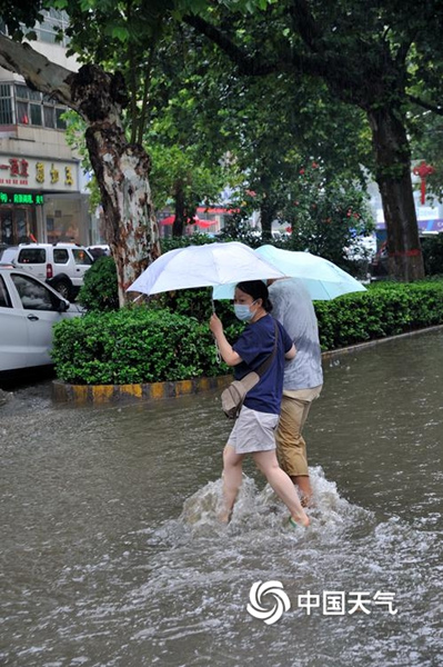 △今天上午,河南汝州强降雨导致低洼路面积水严重