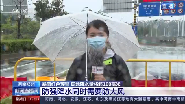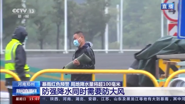 总台记者 田萌:根据郑州市气象台中午发布的气象预报,郑州市正处于红色预警当中,预计在未来的三个小时内,荥阳、新郑还有郑州的降水量都会达到100毫米以上。