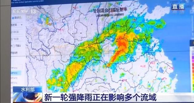 在水利部24小时防汛值班室,根据水利部信息中心利用天气雷达对全国强降雨的实时监测情况,可以看到: