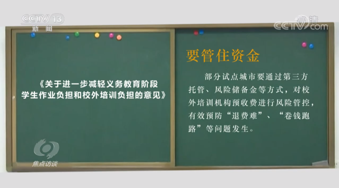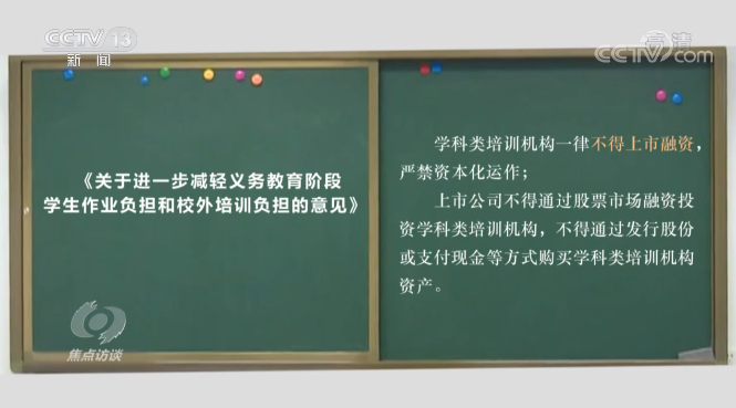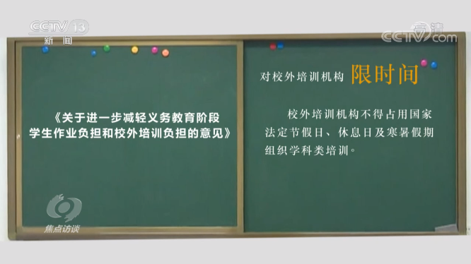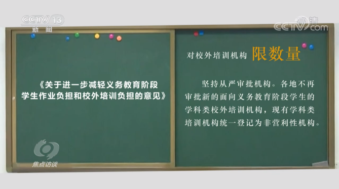 为根治校外培训这些乱象,刚刚出台的《关于进一步减轻义务教育阶段学生作业负担和校外培训负担的意见》,对校外培训机构明确提出了限制。