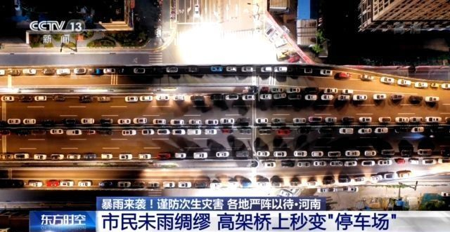 与此同时,河南多地市民们未雨绸缪。就在昨天(21日),针对气象部门发布的预报,河南洛阳、郑州很多市民未雨绸缪,纷纷把车开出地下车库,停到地势较高的地方。我们现在看到的画面就是昨天晚上洛阳的某高架上,桥上两侧停满了车,高架秒变“停车场”,私家车排起百米长龙。今天,河南交警的官微发布消息称,暴雨将至,不少市民担心车辆被水淹,将车停放在高架桥等地势高处避险。交警部门对车辆因应急防汛临时停在道路、高架桥等处不作违章处理,提醒广大市民停放车辆时尽可能不影响道路通行,待暴雨过后要及时将车辆转移到不影响交通的位置。