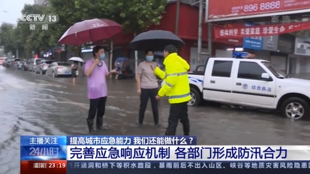 中国城市规划设计研究院生态市政院院长 王家卓:各个部门都应该有针对暴雨这种灾害的预案,比如说医院应该怎么办,我们的通讯、交通、地铁、电力部门应该怎么办,一旦发生事件的时候能够及时地应对。同时这些部门应该还要相互联动,应急管理部门应该在这种部门的应急管理协同方面发挥一些作用。