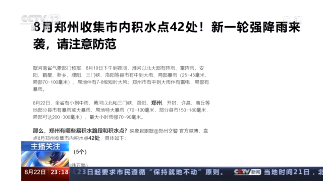 刚刚经历了“7·20”特大暴雨的河南郑州,在面对这一轮暴雨时,提前做出很多应对举措。郑州交警官方微信通过盘点市内42处积水点供市民避险参考。