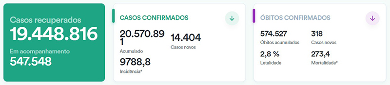 截至当地时间8月22日19时,根据巴西卫生部发布的数据,巴西累计新冠肺炎确诊病例20570891例,较前一日新增确诊病例14404例;累计死亡病例574527例,较前一日新增死亡病例318例;累计治愈19448816例。