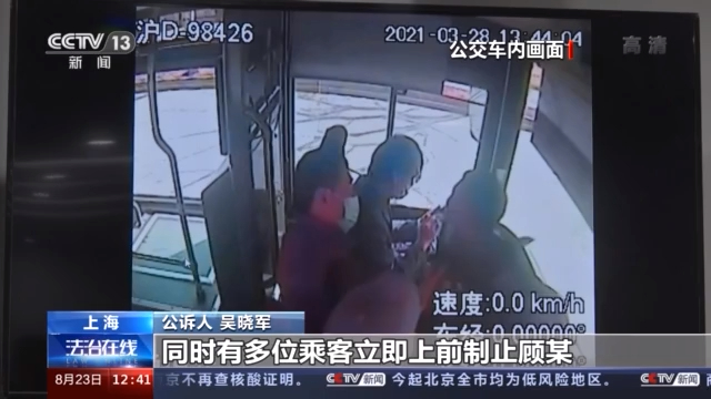 公共场所视频显示,当天13时43分左右,原本坐在座位上的顾某突然起身,走到了驾驶员的位置,并猛然用手拉拽方向盘,驾驶员连忙将车停下,并从怀中掏出手机试图打电话求助。与此同时,坐在前排及后排位置的几名乘客也起身围上来制止顾某的行为,将他拉向车门口的位置,远离驾驶员。但顾某却挣脱出来,再次贴近驾驶员,还用拳头反复击打他的头部。