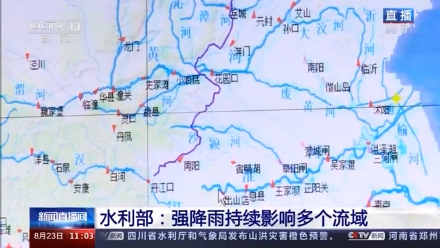 黄河流域受强降雨影响,黄河中游干流及支流伊洛河上游,淮河右岸支流的沙颍河、贾鲁河,还有红乳河,出现了明显的涨水过程。