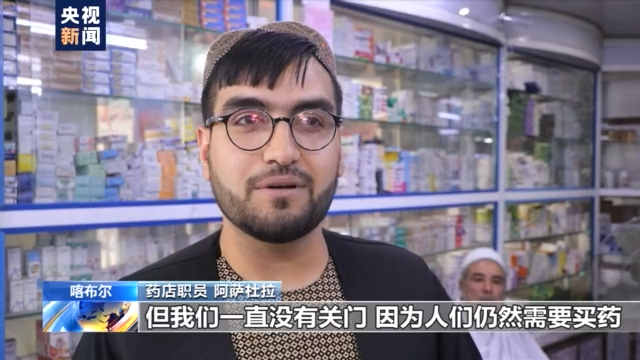 药店职员 阿萨杜拉:塔利班来了之后,喀布尔的药品市场受到了一些影响,但我们一直没有关门,因为人们仍然需要买药。跟之前比生意不太好,城里人变少了,可能是因为大家有点害怕,不敢来赶集,买药的人也变少了,但我们店上个星期以来坚持开业,我们对目前稳定的局面感到高兴。