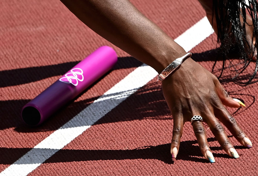 8月5日,英国队队员菲利普在女子4x100米接力预赛中。
