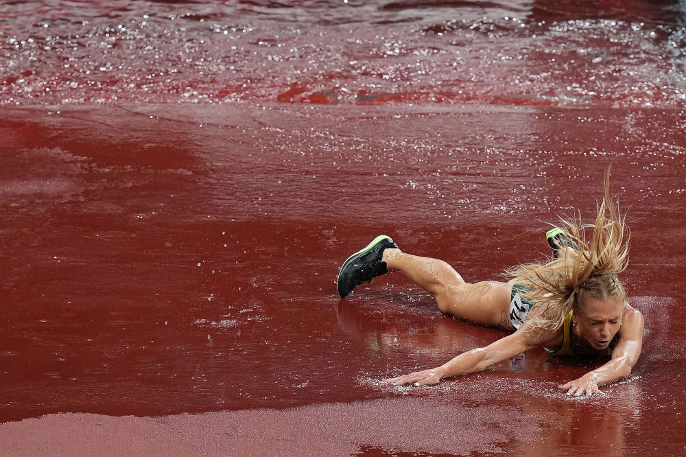8月4日,澳大利亚选手格雷格森在田径项目女子3000米障碍赛决赛中摔倒。