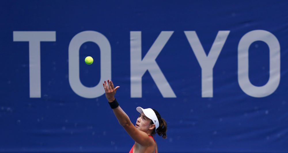 7月26日,西班牙选手穆古拉扎在东京奥运会网球女子单打第二轮比赛中发球。