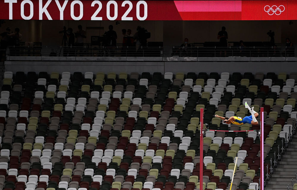 8月3日,瑞典选手杜普兰蒂斯在男子撑杆跳高决赛中。