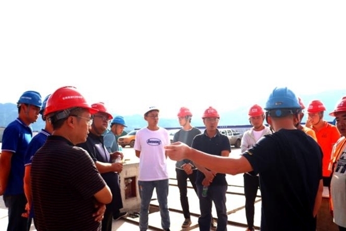 为确保预制T梁浇筑顺利进行,四川交建乐西高速S2-5项目经理部精心部署,在前期严格按照首件工程制度制定详细的施工技术方案,对现场桥梁特种作业人员进行审核,召开施工技术交底、安全交底,详细分析研讨施工过程中的难点和重点,明确分工,强化质量、安全的监督和管理。细化钢筋绑扎、波纹管定位、定制模板拼装、砼振捣等预制T梁施工任务,并严格按照规范进行检查验收,做到过程控制确保符合技术标准。为克服汛期暴雨天气对施工进度的影响,项目负责人张波全程指挥协调,现场管理人员及技术人员相互配合,确保第一片T梁顺利浇筑。