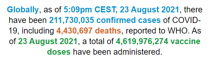 根据世卫组织最新实时统计数据,截至欧洲中部夏令时间8月23日17时09分(北京时间8月23日23时09分),全球累计新冠肺炎确诊病例211730035例,累计死亡病例4430697例。23日全球新冠肺炎确诊病例新增441677例,死亡病例新增8031例。(总台记者 朱赫)