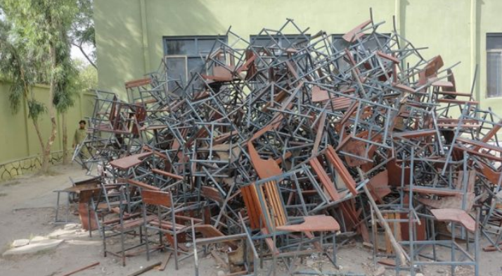 △从未使用过的美援学校,崭新的桌椅被堆在户外准备用作柴火。图片来源:SIGAR