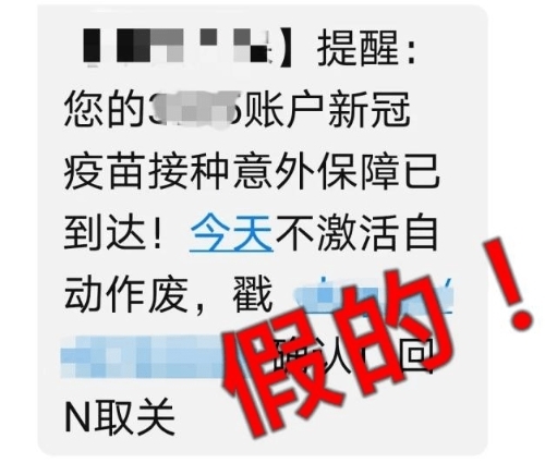 近日,有群众反映收到了关于“新冠疫苗接种意外保障已到达”的短信。