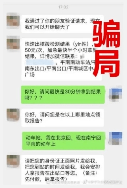 骗局四:核酸检测加急最快半小时