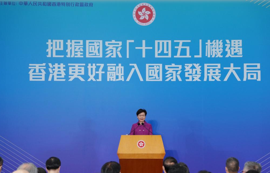香港特区行政长官林郑月娥8月24日表示,中央安排高规格宣讲团来港宣讲“十四五”规划机遇,特区政府已安排官员就香港金融、创科及航空工作向宣讲团介绍,希望获得中央支持。她指出,除巩固提升金融中心地位外,“十四五”规划纲要对香港还赋予了新的定位,包括支持香港提升国际航空枢纽地位、支持香港建设国际创新科技中心和区域知识产权贸易中心,特区政府会积极跟进。