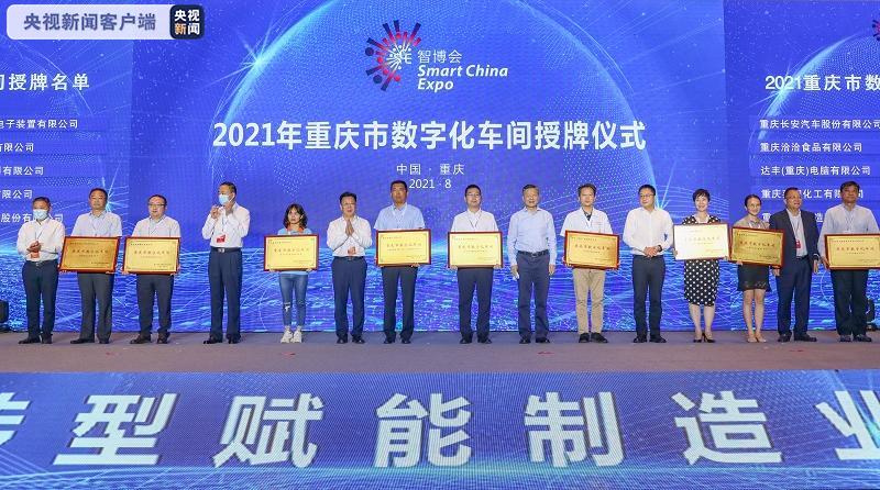 在论坛上,参会领导为10家2021年重庆市数字化车间代表企业及10家智能工厂代表企业授牌。
