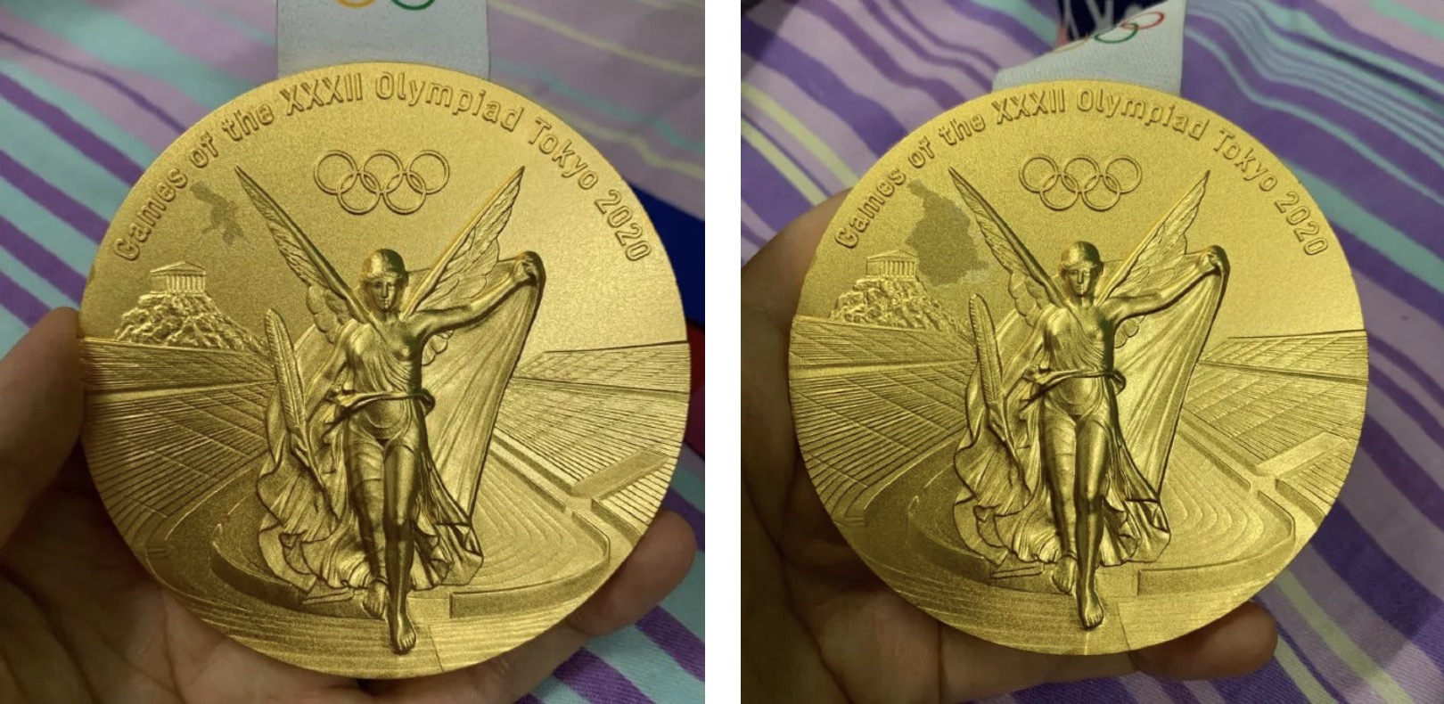 据悉,东京奥运会金牌重约556克,包含550克银和6克镀金,采用从废旧手机等小型电子设备中提炼出的金属制作而成。