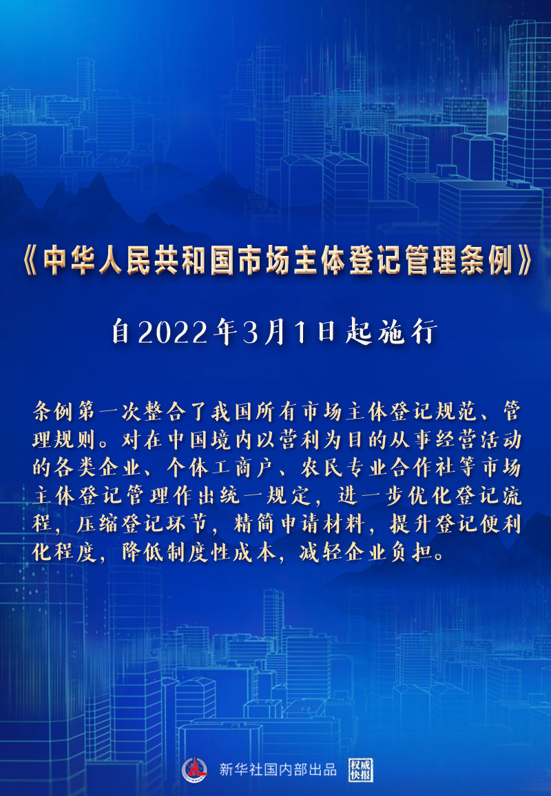 对在中国境内以营利为目的从事经营活动的各类企业、个体工商户、农民专业合作社等市场主体登记管理作出统一规定,进一步优化登记流程,压缩登记环节,精简申请材料,提升登记便利化程度,降低制度性成本,减轻企业负担。