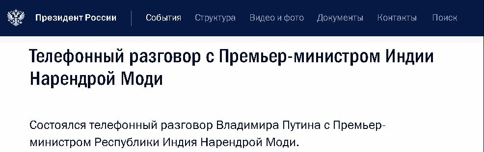 当地时间8月24日,俄罗斯总统官网发布消息说,当天俄罗斯总统普京与印度总理莫迪举行电话会谈商讨阿富汗局势。