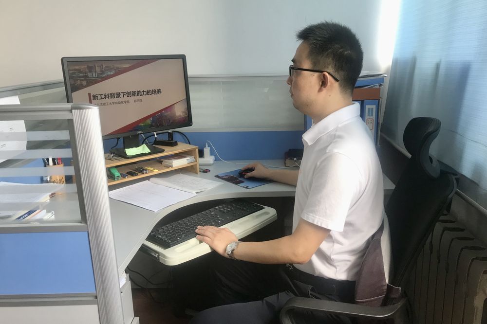 哈尔滨理工大学自动化学院教师孙明晓进行线上授课准备。受访者 供图